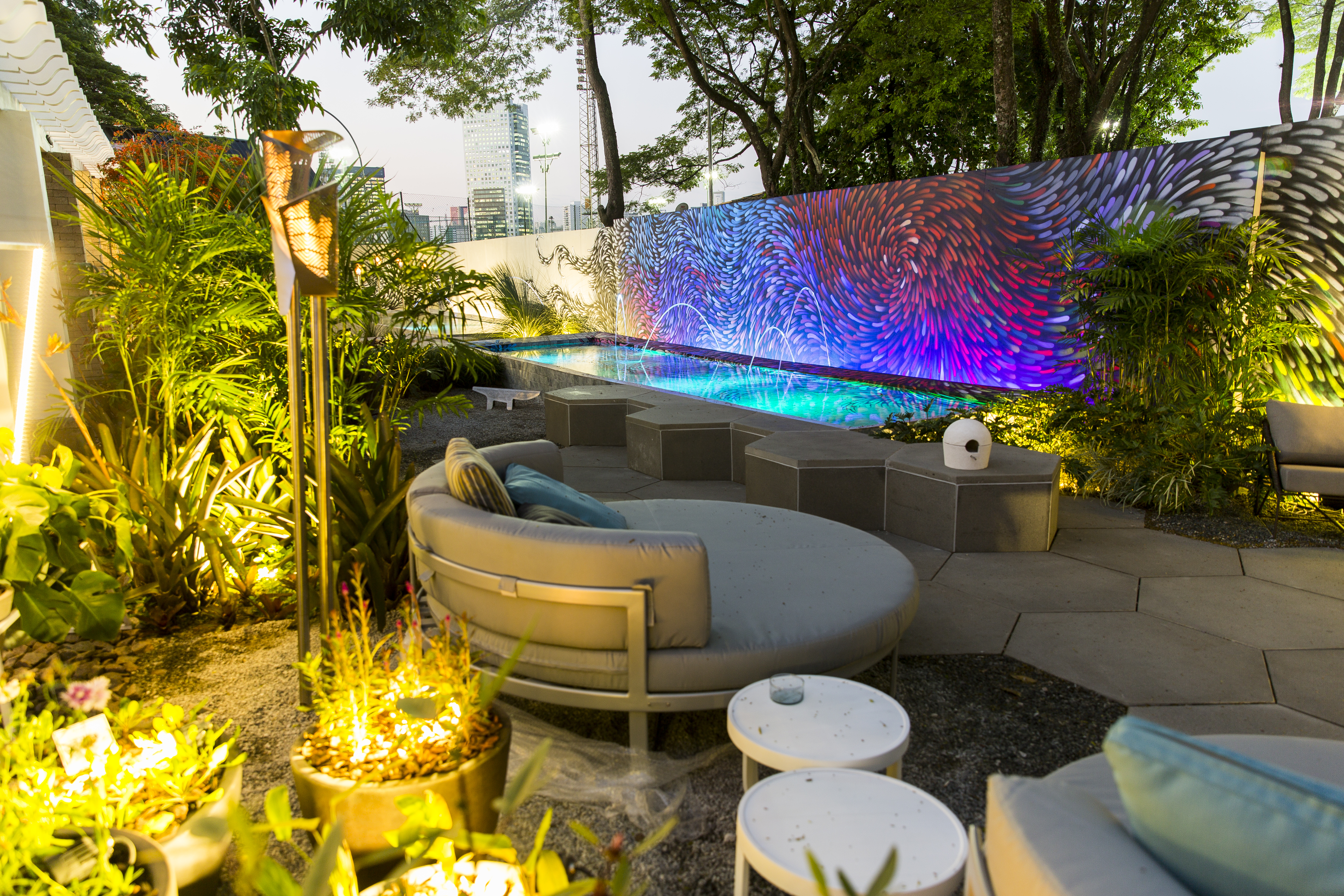 A iluminação é a protagonista no jardim pré-fabricado da CASACOR SP 2018