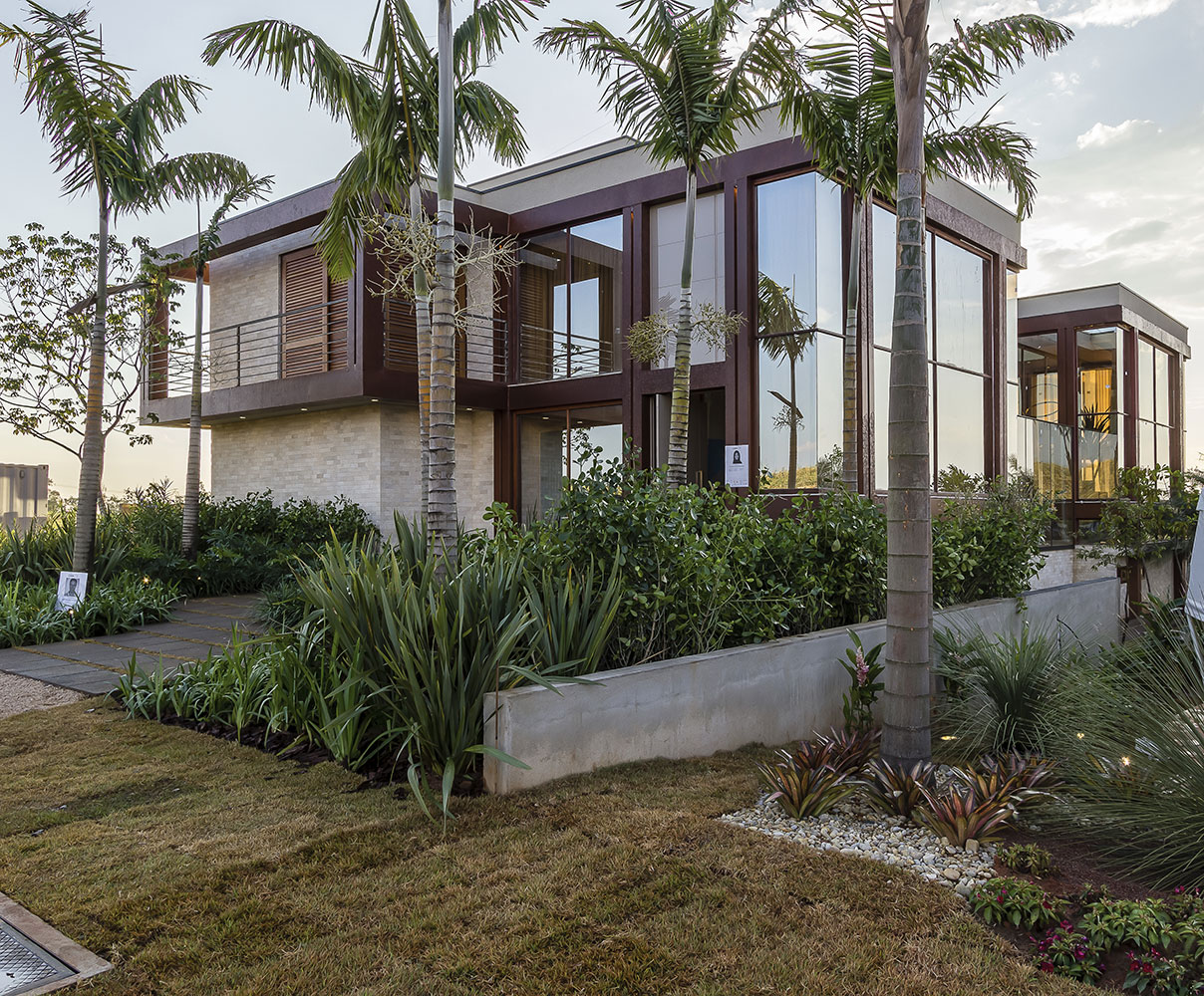 A Casa Tropicália foi projetada pela dupla de arquitetos Daniele Guardini e Adriano Stancati, que criou uma moradia de 837 metros quadrados, com fachada revestida em pedra e integração entre interiores e exterior na área social. Já a Casa Bossa Nova, com assinatura das arquitetas Adriana Consulin e Izilda Moraes, é uma construção sustentável que se molda ao terreno. Ela abusa da transparência dos grandes vidros e foi composta por três níveis, com área de 820 metros quadrados.