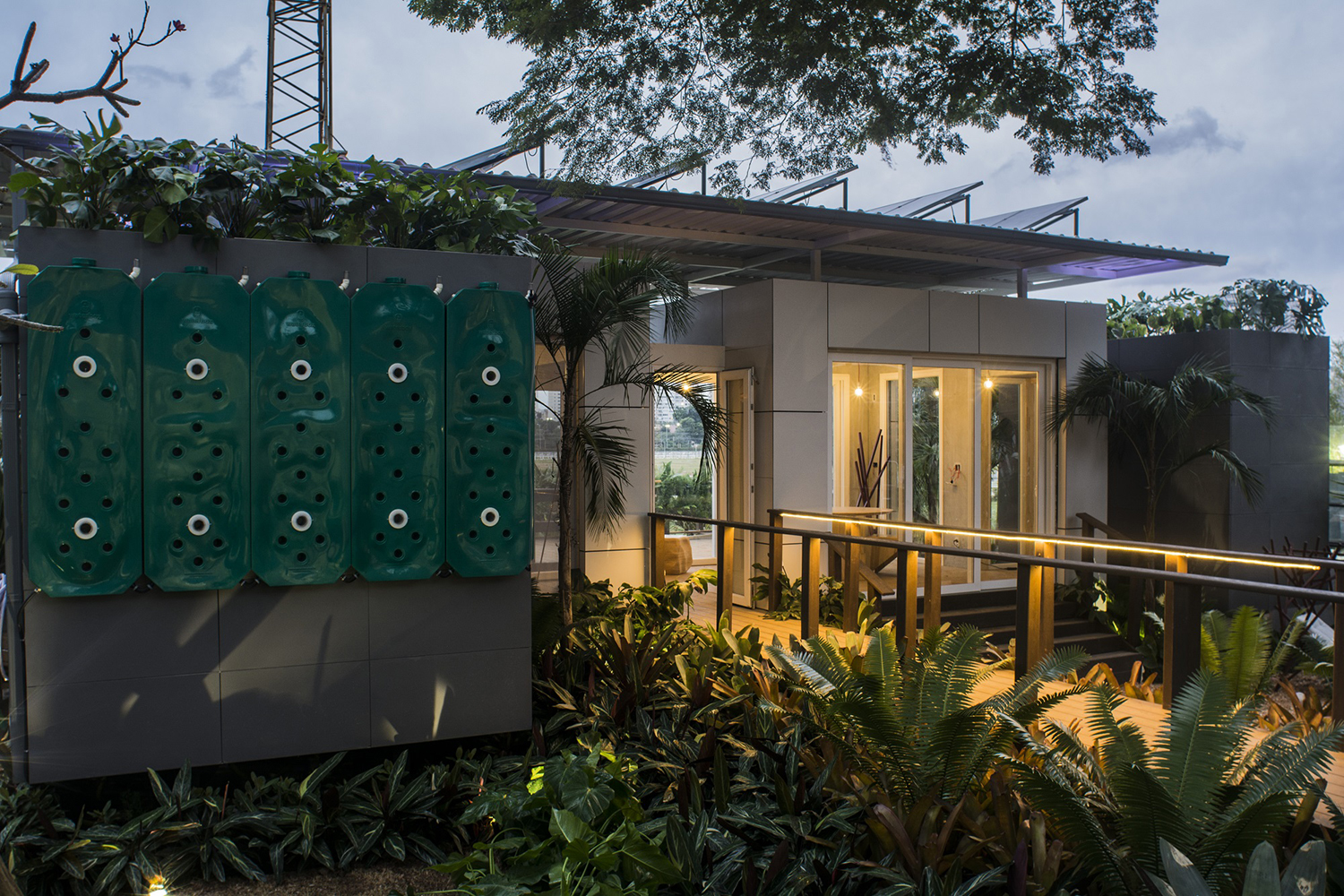 O projeto paisagístico, de Daniela Sedo, utilizou espécies tropicais com ênfase em plantas nativas; painel com hortaliças e flores comestíveis; jardim suspenso com lajes forradas de vegetação, para diminuir a temperatura interior; e irrigação automática com sensor de umidade do solo e chuva do jardim.