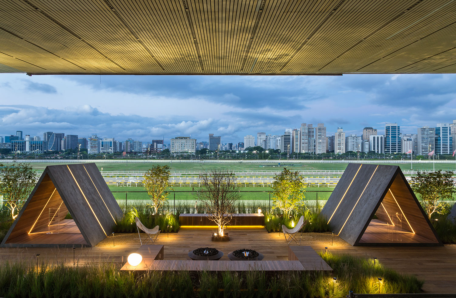 O projeto de Duda Porto coloca o visitante a refletir sobre o que realmente importa na vida, através de 4 cabanas lindas que se mesclam a paisagem do Jockey