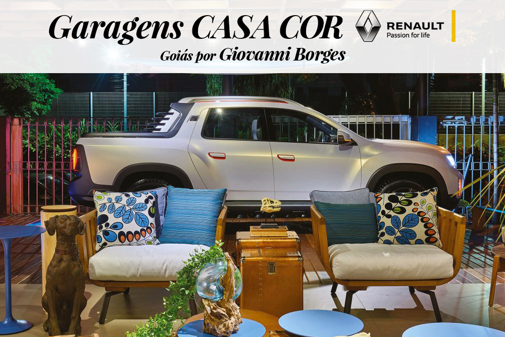 A CASA COR Goiás trouxe uma garagem pensada para um casal urbano que adora viajar, batizada de Studio do Aventureiro. O espaço de 100 m² contempla um living, um espaço gourmet com adega, uma área de lazer com piscina e a vaga destinada ao carro. A Renault é o carro oficial de CASA COR – todas as mostras do Brasil têm garagem com carros Renault.