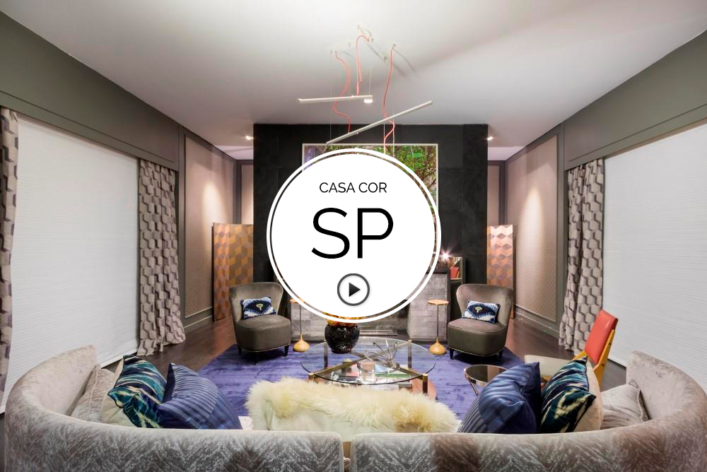 No Chalé Urbano da CASA COR São Paulo 2015, espaço de 60 m² projetado por Gustavo Paschoalim e Paulo Azevedo, há um misto de lounge e banheiro, com uma linha contemporânea com algumas referências midcentury sobrepostas, que compõem uma bossa interessante e imprimem personalidade ao espaço. A mistura de tons metálicos como cobre, prata e ouro remete as muitas cores exploradas e aplicadas nos anos 70. Logo na entrada destaca-se a fachada em ripas de concreto, com um grande pórtico em pedra volcano black, iluminado com LED. O lounge se descortina como um espaço que combina tons metálicos, presentes não só nos móveis como também em vários revestimentos como o papel de parede metalizado com micro estampas, aplicado no meio das boiseries das paredes. Já os banheiros, que ficam atrás da parede da lareira, seguem a mesma linguagem do lounge. A pedra volcano black do pórtico de entrada e da parede da lareira também foi aplicada na meia parede dos banheiros. As portas recebem boiserie com espelhos que aumentam e enobrecem o espaço. Tanto as louças quanto os metais têm recursos para garantir a economia de água. Você confere tudo isso no TV CASA COR Ao Vivo!