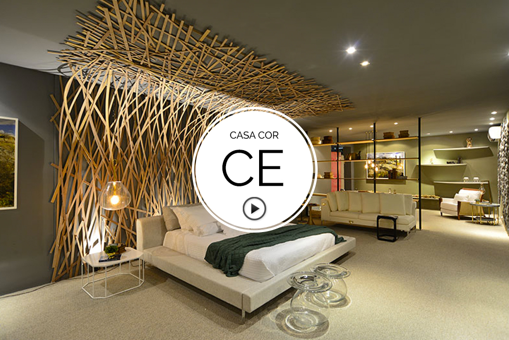 Uma imponente cabeceira chamava a atenção dos visitantes do Quarto do Casal com Home Office na CASA COR Ceará 2015. Assinado por Liana Santana, o ambiente era dividido por uma estante, que separava a área de descanso do espaço para trabalho. Conheça no vídeo gravado pela TV CASA COR!