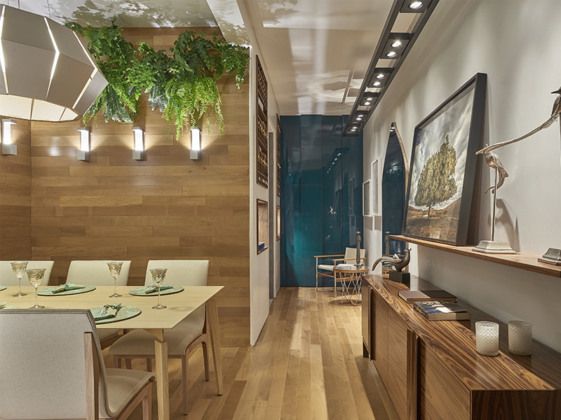 A designer Laura Santos misturou de forma harmônica cinco tons de madeira no ambiente da mostra mineira