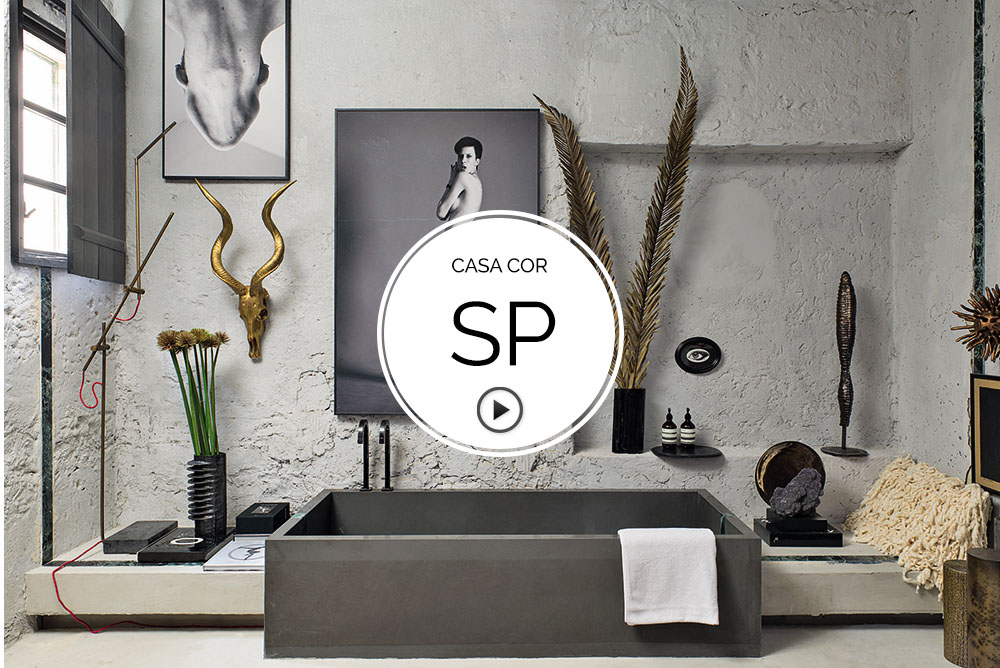 As texturas rústicas têm papel fundamental no Banheiro Unissex de Gustavo Neves na CASA COR São Paulo 2016. O ambiente traz banheira em pedra natural, piso em cimento queimado e paredes caiadas em tons de cinza, além de conservar a estrutura original. Neves também garimpou janelas de demolição dos anos 1940 e escolheu fotos de nus do brasileiro Ivan Erick para compor o espaço, que traz elementos da história do banho e do culto ao corpo. A TV CASA COR mostra todos os detalhes do espaço. Curta e compartilhe!!