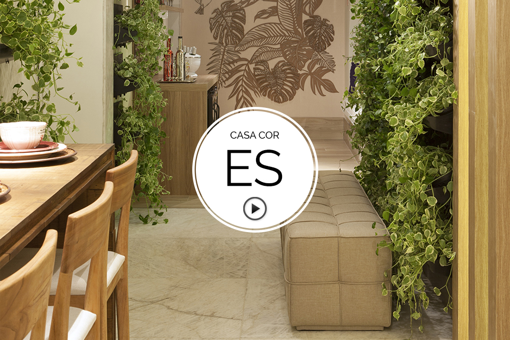 Varanda Gourmet da CASA COR Espírito Santo 2015, assinada por Amanda Depes Vergada Lopes, Ana Carolina Ribeiro Cardoso e Luiza Lubiana Teubner. O trio tirou partido do mármore, pois o estado é o principal produtor e maior processador e exportador de rochas ornamentais do Brasil. Pórticos em madeira aliados à iluminação setorizam os ambientes, juntamente com os jardins verticais que emprestam frescor e representam a biodiversidade. As imagens de plantas brasileiras são da fotógrafa Caroline Vergas. Veja mais informações e detalhes do ambiente na entrevista com as profissionais feita pela TV CASA COR!