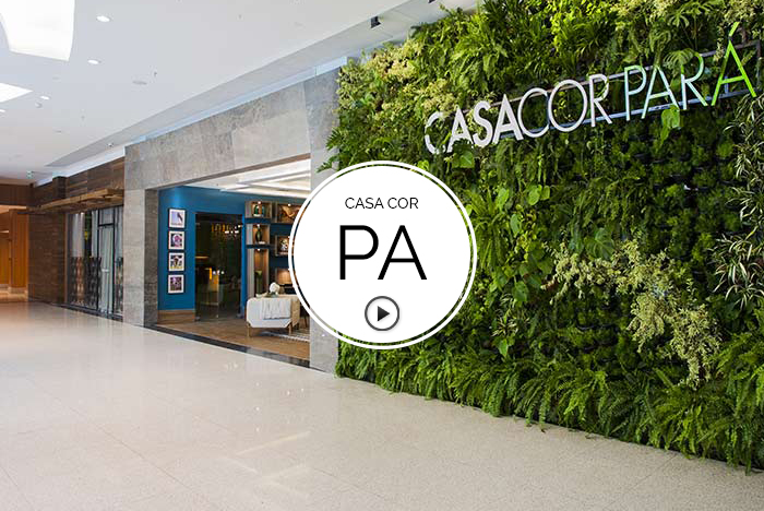 Fachada CASA COR de Heluza Sato e Maurício Toscano na CASA COR Pará 2015. Nesta fachada-vitrine, visível para o público que passeia pelo shopping, o tema Brasilidade foi visitado em uma farta e exuberante vegetação natural. Confira como os profissionais elaboraram o projeto no vídeo gravado pela TV CASA COR!