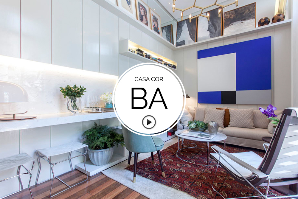 O Estar Íntimo da CASA COR Bahia 2015 foi projetado por Flávia Foguel, Cristiana Reis e Milena Sá. Painéis em madeira e espelhos revestidos nas paredes envolvem o espaço, junto com o papel de parede vinílico. Na parte superior, prateleiras exibem a coleção de fotografias. O ambiente também conta com uma bancada de mármore multiúso, que pode receber pequenas refeições ou serve de apoio para objetos. O piso original foi mantido, mas a sobreposição de tapetes trouxe um toque ainda mais especial. Confira os detalhes no vídeo produzido pela TV CASA COR!