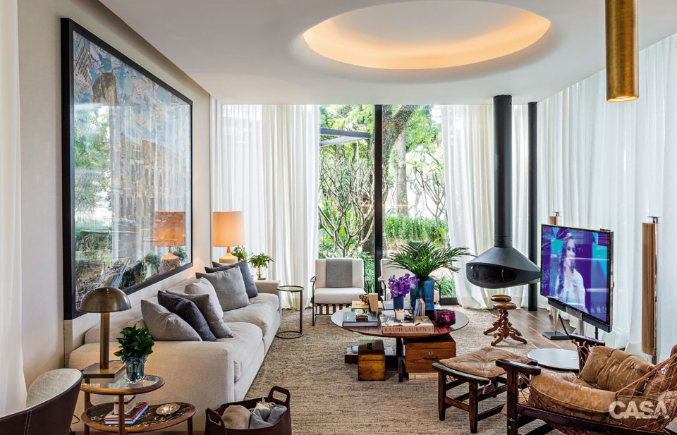 A Loja Casa Cor, projetada pelo arquiteto paranaense Maurício Arruda, é um ambiente desenvolvido com o intuito comercial, mas também serve de inspiração para os espaços de casa. No canto direito da foto, os quadros apoiados no chão estão sobrepostos, tendência vista em outros espaços da mostra, como na Casa do Bosque, de David Bastos.