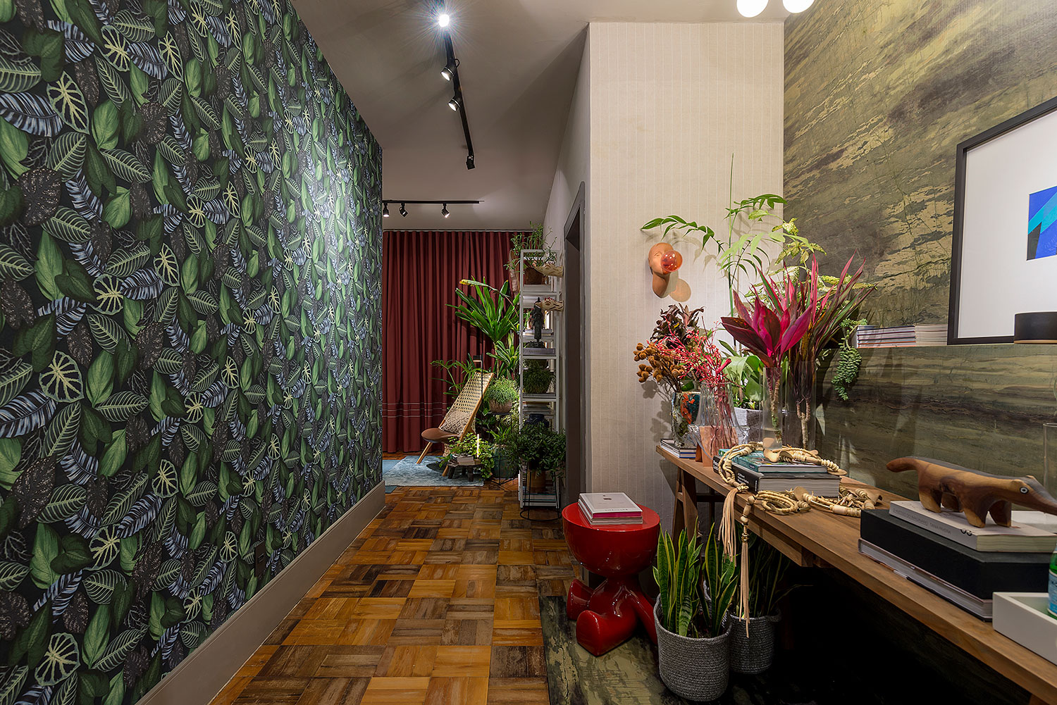 Os profissionais da Klaxon Arquitetura trazem uma pequena selva para um compacto espaço, de forma harmônica com o design e a arte