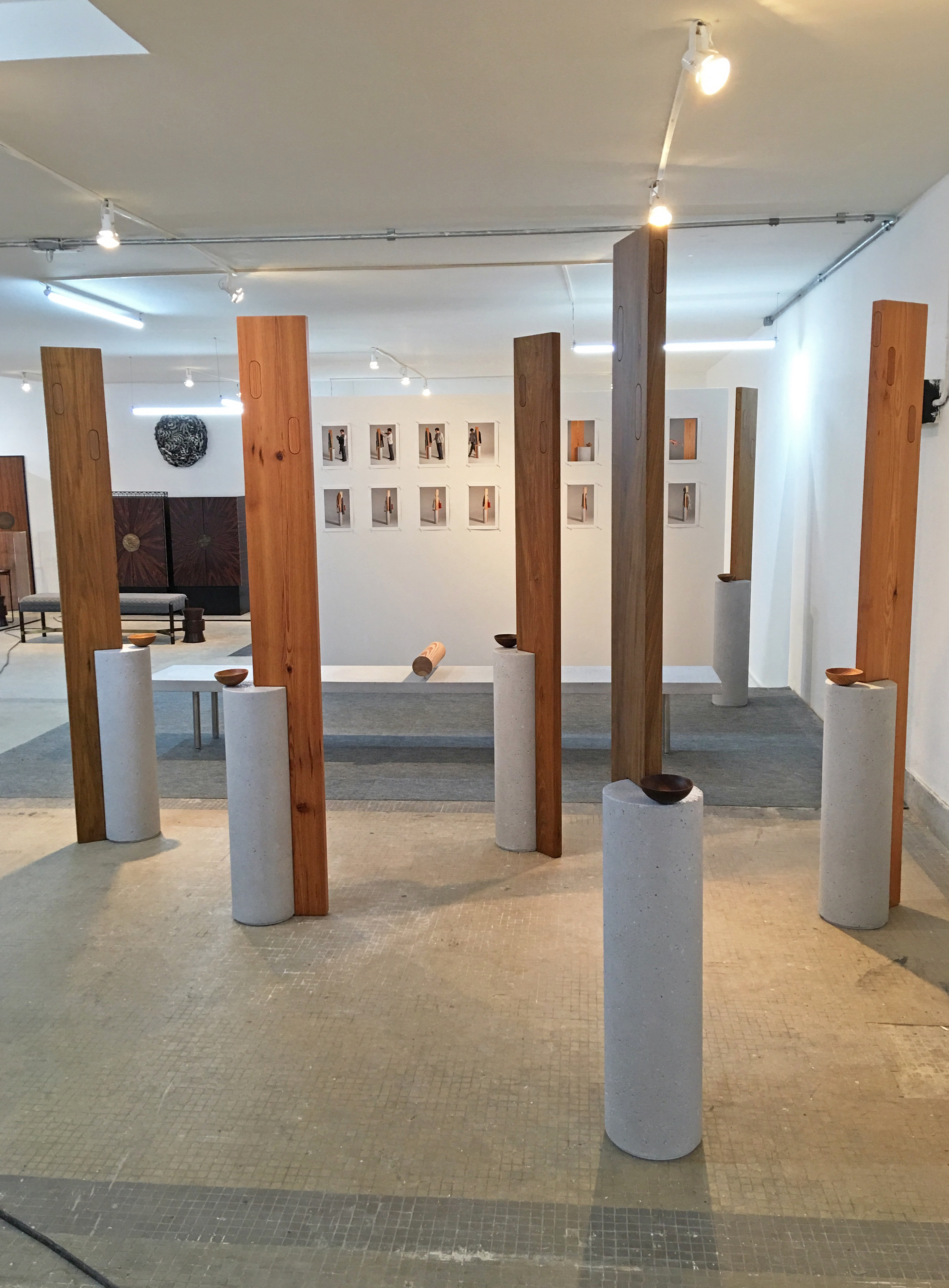 Os ganchos faceiam a superfície da madeira e com um toque se abrem para o uso, como uma alavanca de liga/desliga. Uma cumbuca de madeira, pousada na beira da base de concreto serve para colocar as chaves. As madeiras usadas na fabricação variam, podendo ser pinho-de-riga, ipê, catuaba e freijó, entre outras. O que torna o trabalho ainda mais personalizado, são os tons e veios da madeira, resultado das peculiaridades de cada peça.
