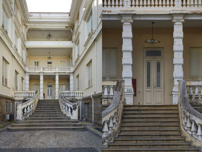 A escadaria principal que oferece acesso ao casarão possui piso em pedra natural da época da sua construção. As pedras serão polidas, para ficar com o mesmo aspecto de quando foram instaladas. Atualmente, o guarda-corpo com balaustre apresenta falhas e pedaços incompletos. Ele também será recuperado. A parte de cima do guarda-corpo que é de mármore, vai passar por um processo para recuperar sua tonalidade original; algumas partes que estão quebradas serão reconstruídas.