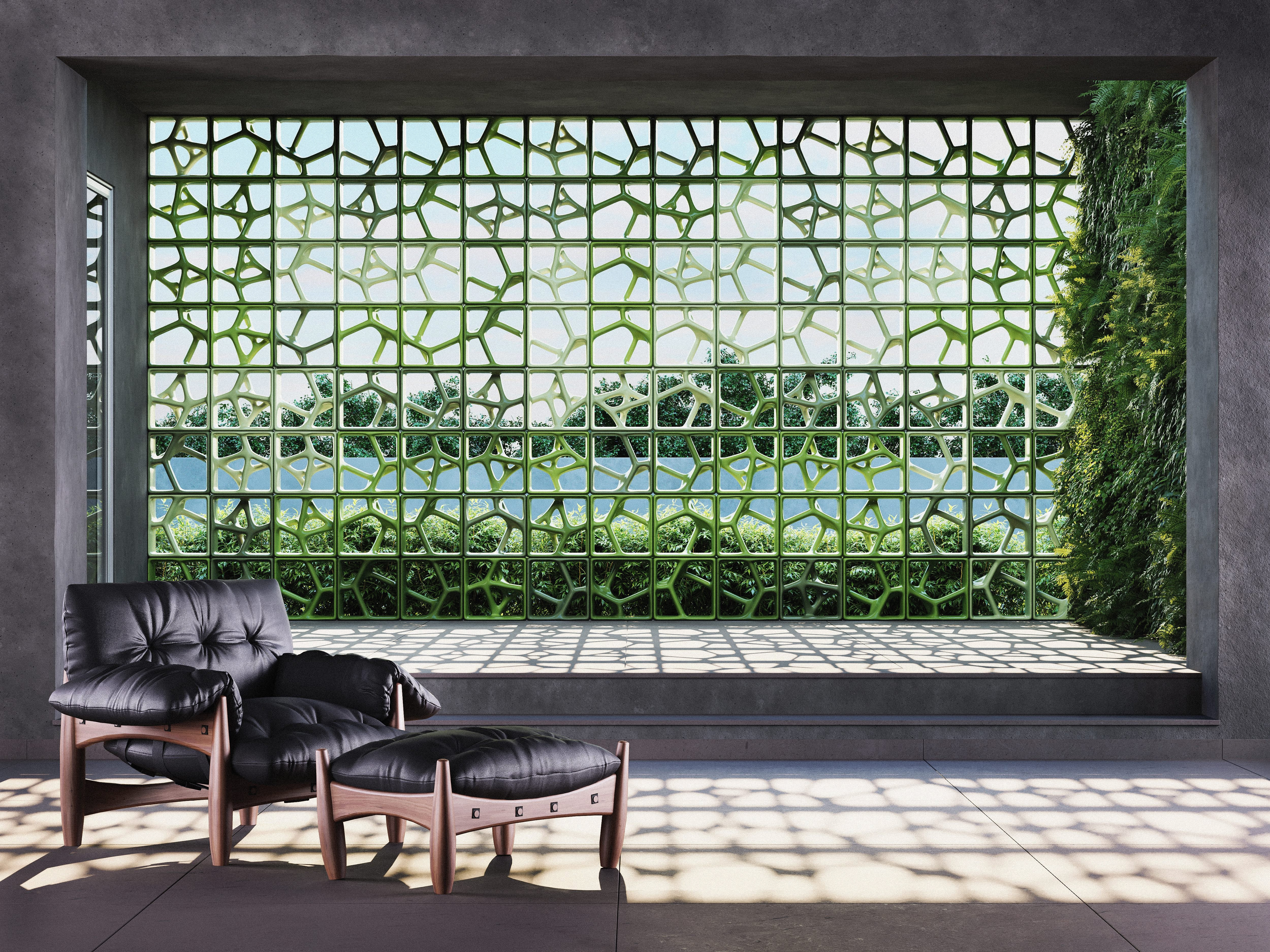Inspirada nos desenhos dos caules de plantas, a coleção permite que se crie uma teia orgânica de cobogós