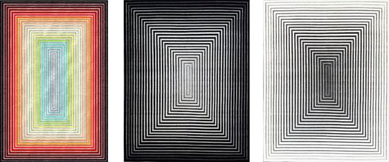 2/14 Rehaby, por Illulian. Os tapetes de luxo da marca tem estampas impressionantes, com cores e formas de um caleidoscópio. O tapete acima apresenta uma estampa linear e dá o efeito de ilusão de ótima, criando profundidade. O produto pode ser feito com lã ou seda, deixando-o ainda mais sofisticado. (Divulgação/CASACOR)