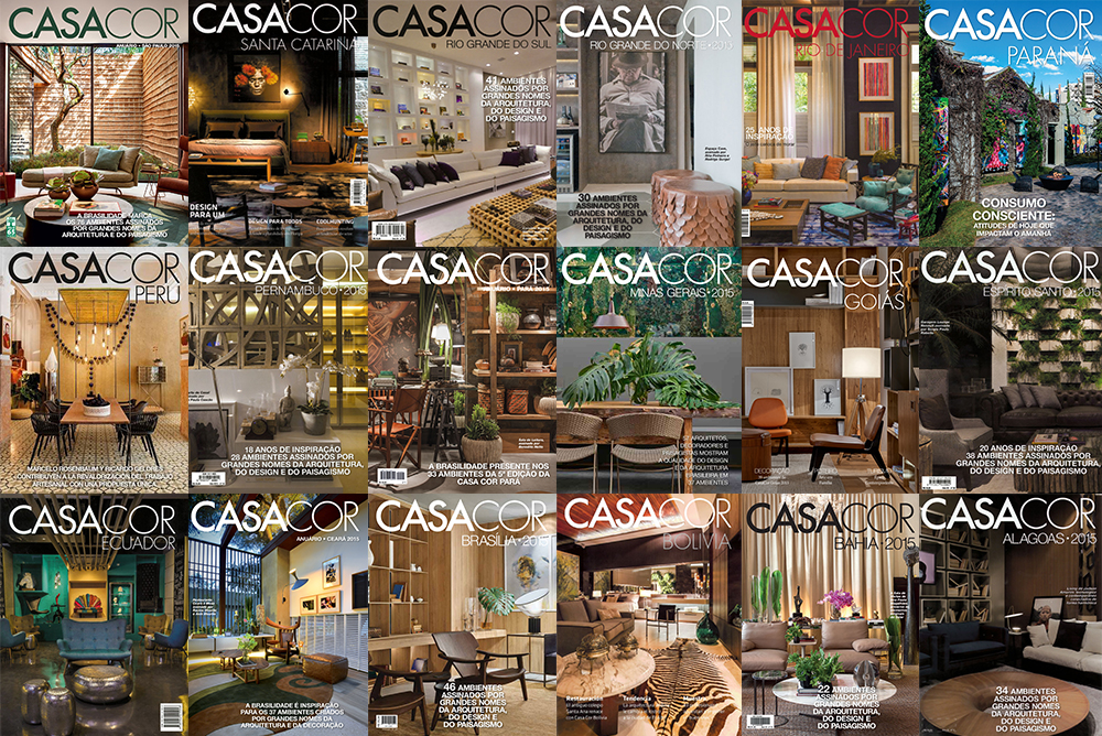 Durante todo o ano de 2015 a CASA COR rondou por vários estados do Brasil e três países da América Latina. Em cada mostra, foi lançado o conhecido e cobiçado anuário. Uma publicação que reúne informações, fotos e entrevistas exclusivas com os profissionais que projetaram os ambientes. A revista movimenta o universo da arquitetura, paisagismo e designers em cada estado revelando detalhes surpreendentes dos espaços e ainda permite ao leitor conhecer mais sobre os profissionais que idealizaram os projetos.