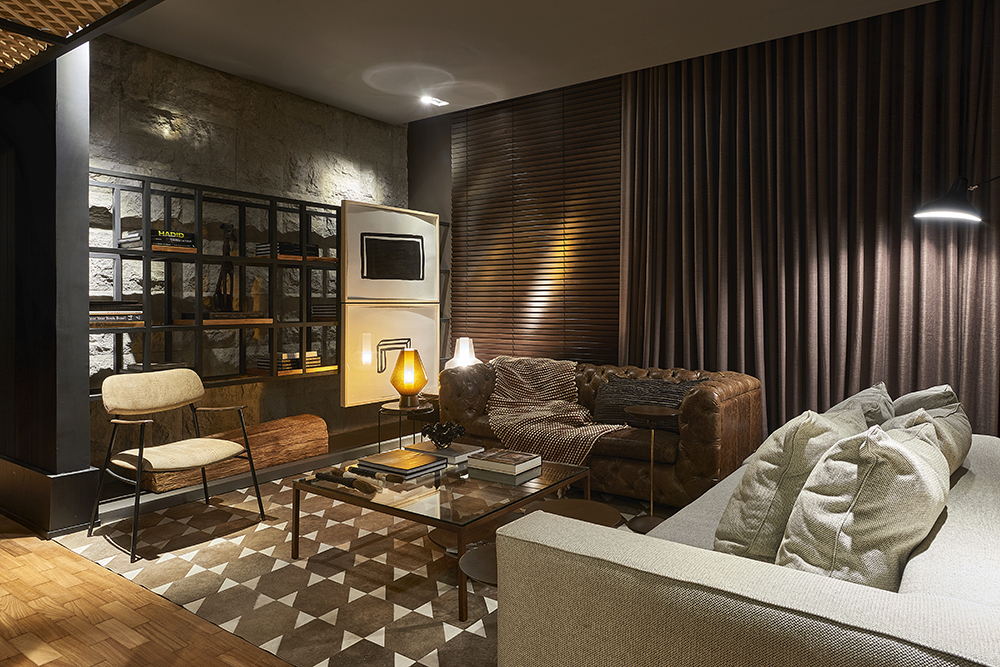 Júnia Braz e Fernanda Villefort construíram na CASA COR Minas 2015 um ambiente que valoriza, não só a brasilidade, mas também as raízes mineiras. No Estar Íntimo e Circulação a essência local está presente na seleção de obras de arte e nos materiais como a madeira, as pedras, o couro e nas tramas da treliça e biombo.